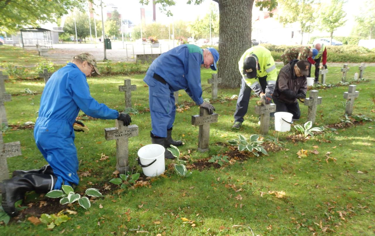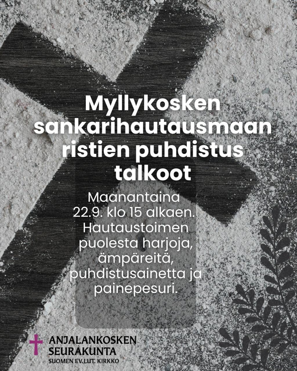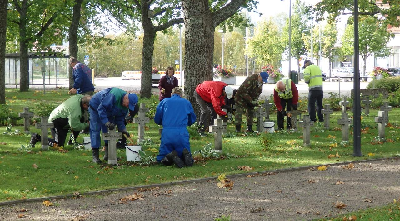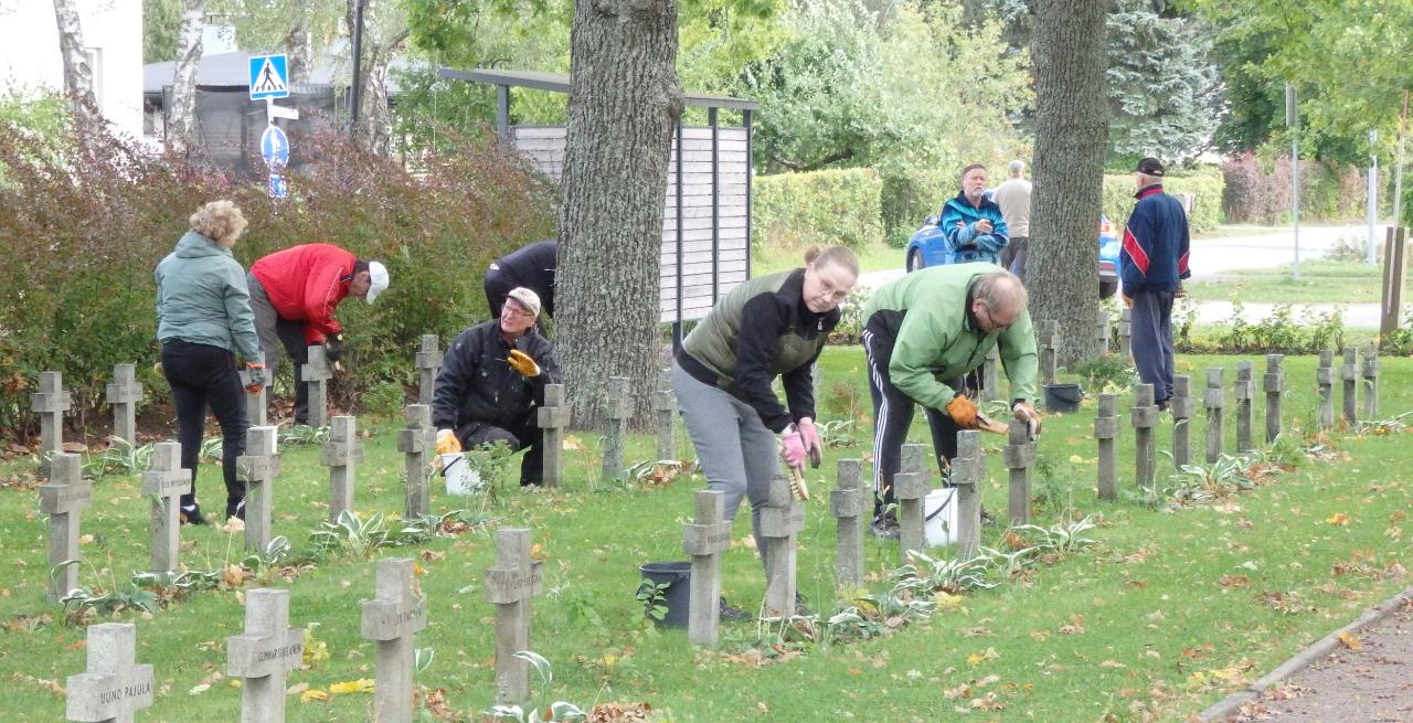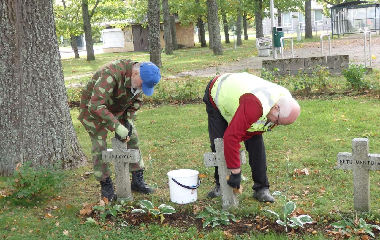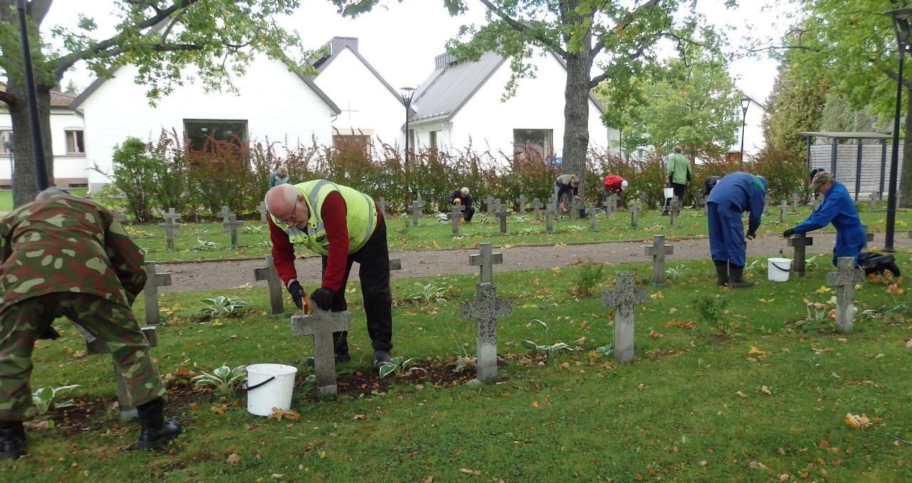 Anjalankosken Seurakunnan järjestämät talkoot Myllykosken sankarihautojen ristien puhdistamiseksi harjattiin ma 22.9. iltapäivällä mukavassa syyskelissä.