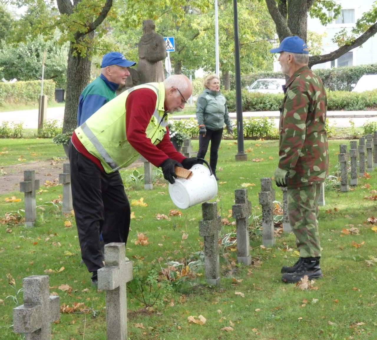 Myllykosken sankarihautojen ristien puhdistusta